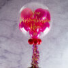 Let any close friend or relative know that you want them to be your right hand woman on your wedding day with our stunning balloon-filled bubble balloon. Available in a range of vibrant colours, you can either personalise with your own text or receive with our ‘Will You Be My Maid Of Honour?’ message. We inflate a 20″ spherical clear plastic balloon and then insert smaller balloons in the colour of your choice inside, creating a wonderful looking effect. For a finishing touch, we add 4 small balloons to the base as well as colour coordinated ribbons and a weight. On average, these balloons last between 7 – 10 days.