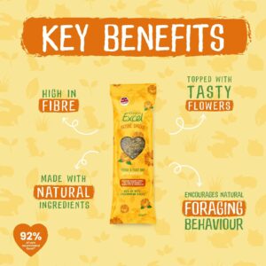 Excel Forage & Feast Hay Bar with Marigold is a delicious and healthy treat for rabbits, guinea pigs, and chinchillas. Lovingly topped with tasty marigold blossoms, this hay bar is made with natural ingredients and is perfect for handfeeding.