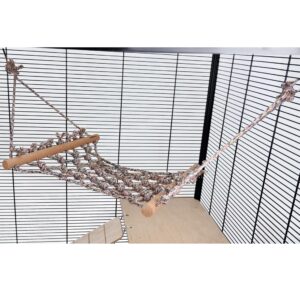 Durable Design: Constructed from high-quality, twisted rope and sturdy wooden rods, this hammock is built to withstand the playful antics of small pets, ensuring long-lasting use.