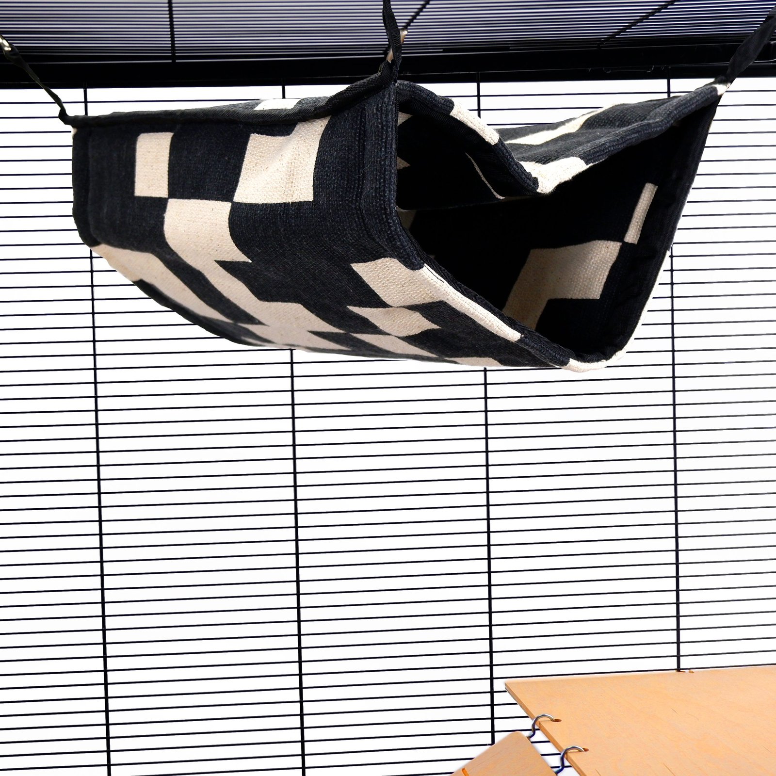 Constructed from superb quality quilted material, this bunkbed is one of the larger small animal items we offer. It easily attaches to your pet's cage with clips, ensuring a secure fit. Your furry friends will love the versatility of this design, as they can choose to lounge on the top layer or snuggle in the cosy bottom section.