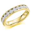 This platinum diamond set band will be perfect for either a wedding band or eternity band. The ring is 2.4mm in width and features two rows of round brilliant cut diamonds in a claw setting. The diamonds spread 33% across the ring, with the diamonds being G/H Si clarity