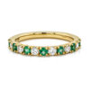 This beautiful platinum ring holds 7 brilliant cut emeralds and 8 brilliant cut diamonds. The emeralds have a total carat weight of 0.21ct and the diamonds have a total carat weight of 0.26ct.