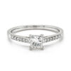 This stunning solitaire platinum ring holds a natural radiant cut diamond, a radiant diamond combines the sparkle of a brilliant cut while keeping the elongated rectangular shape of an emerald cut. This diamond is 0.61ct and is certified E/SI2.