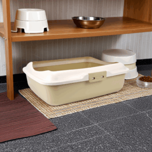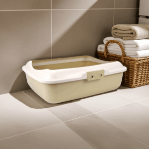 Premium Cat Litter Tray with Raised Rim – Beige (50cm x 40cm)