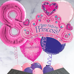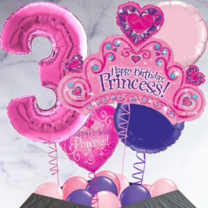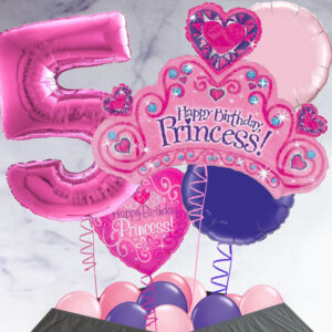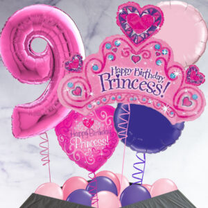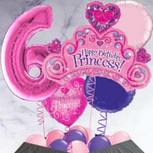 Help your little princess celebrate her birthday in style with this fantastic Princess Crown balloon package, which arrives inflated and ready to use. The main feature is a 34″ ‘Happy Birthday Princess’ crown-shaped foil balloon, which is accompanied by an 18″ heart-shaped foil and two 18″ round foils. Our balloon bundle is suitable for any age – simply choose your foil number options when purchasing and we’ll do the rest. The foil numbers stand 26″ high, making them a great decoration for the big occasion. To finish, we add ten small scatter balloons in a matching colour scheme, great for finishing your decorations.