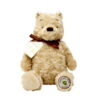 Piglet is a diminutive 7" / 17.8cm in size and is fully jointed. His classic rendition has been inspired by the drawings of E. H. Shepherd, giving him more of a slight frame, with distinctive ears and snout, matching that of his timid nature and small stature. He has been sewn from the finest, custom-dyed wool felt with glossy, black glass eyes and delicate hand shading to define and shape his features, ears and 'trotters'. He has been cleverly designed, due to hours of research, resulting in shaped and bent limbs, with stuffing of soft cotton and pellets for that genuine, cuddly feel and weight. Now for his accessories, a cosy and soft, cotton-knit, sleeveless onesie in a woodland, spruce green (custom-dyed too), whilst holding a trio of detailed, delicate wool felt violets, which just so happens to be his favourite. Point to note – Piglet is also one of the first to 'bear', the newly introduced RJW brass button.