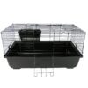 Measuring 120cm x 59cm x 50cm, this cage features a large top-opening door and a drop-down front door, allowing for easy access, cleaning, and interaction. The removable hayrack ensures clean and accessible food storage, while two securing clips provide additional stability.