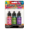 Ranger Alcohol Ink Pearls Kits 2 from World of Craft. Kit #2 – Alcohol Ink Pearls Kits – Sublime, Tranquil, Intrigue. Tim Holtz Alcohol Inks – Inks and Kits – Kits. Tim Holtz Alcohol Pearls are permanent, fast drying, pigment and dye inks formulated to. create pearlescent colorful effects. Use with Tim Holtz Alcohol Inks and Alcohol Ink Blending. Solution to achieve luminous layers on YUPO, Alcohol Ink Cardstock, Alcohol Ink Surfaces,. and other non-porous surfaces. Available in 12 colors open stock, each in a . 5 fl. oz. bottle or. four kits, each containing 3 colors. All bottles of Tim Holtz Alcohol Pearl Inks have a mixing ball in them. Occasionally, the mixing ball can get stuck in the pearlized pigment that settles to the bottom. Here are some tips for loosening the ball to properly mix the solution. Placing the bottle in some warm-to-hot tap water for a few minutes can help loosen the mixing ball. Then, unfold a standard size paperclip (do not use a pin) and carefully insert it through the tip until it reaches the bottom of the bottle. Stirring” the paperclip usually dislodges the mixing ball and the bottle can be shaken as usual. Ranger suggest storing Tims Alcohol Pearls on their sides. Doing it this way allows the mica to settle to the sides rather than sticking to the bottom. It makes it easier to shake the bottle to mix the solution. Tim stores his Pearls in the Alcohol Ink Storage Tin, and then lays the tin on its side. TH2101