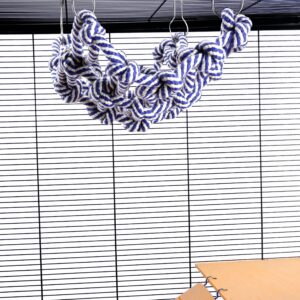 This nautical-inspired cargo net climber features classic blue and white striped rope, reminiscent of maritime designs. The handcrafted grid pattern creates multiple climbing paths and resting spots for your small pets. Four reinforced corners feature durable metal hooks for secure attachment to cage corners.