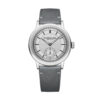 The dial, located beneath a vintage-inspired sapphire crystal glass-box, has been refined to the highest degree. The hours and minutes are eloquently conveyed with silver-toned hands, lined with Super-LumiNova®. The sector dial presents the hours, minutes and seconds periods on discrete tracks, augmenting readability.A closer inspection of the dial reveals contrasting finishes, the hour track is smooth, the minute track is snailed and the central area of the dial is adorned with a delicate vertical brush. The millesime features a small seconds display at 6 o’clock, delineated with a neat recessed circlet, introducing a seemly play with depths, which is enriched with a tasteful selection of details.The bezel is decorated with a vertical satin-brush that contrasts wonderfully with the highly polished bevel nearby. This juxtaposition of two finishes reinforces the overall level of finishing, a characteristic that distinguishes the millesime collection as special within a crowded marketplace.A sapphire caseback affords sight of the self-winding movement within and the “W-shaped” oscillating weight, RAYMOND WEIL’s horological signature. Offered in a selection of dial colours, each model is paired with a colour-coordinating genuine calf leather strap with a unique W-stitched detail.