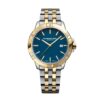RAYMOND WEIL pays homage to the rich heritage and traditions of horology while celebrating the simplicity of refined design. The brand has naturally delved into the past, creating timepieces that offer period charm combined with present-day practicality.The denim blue dial, located beneath a vintage-inspired sapphire crystal glass-box, has been refined to the highest degree. The hours and minutes are eloquently conveyed with silver-toned hands, lined with Super-LumiNova®. The sector dial presents the hours, minutes and seconds periods on discrete tracks, augmenting readability.The bezel is decorated with a vertical satin-brush that contrasts wonderfully with the highly polished bevel nearby. This juxtaposition of two finishes reinforce the overall level of finishing. The watch has diamond set case horns.