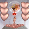 If you’re looking to show someone how much they truly mean to you, our red hearts balloon package is the perfect solution. Comprising of a variety of balloons with a red heart theme, it’s guaranteed to be a fantastic surprise. Whether it’s for Valentine’s Day, an anniversary or another special occasion, our balloon bunch will be a proven winner. Our package includes: 1 x red heart filled personalised inflated bubble balloon, 2 x red foil heart inflated balloon bunches, 10 x inflated small red heart scatter balloons, Our foil balloons have a float time of 7-10 days, please ensure they are kept in a room temperature environment as helium balloons can appear to deflate in colder temperatures.