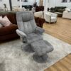 The regular retail price of this chair is £409. This chair is an ex-showroom model – it’s practically brand new! A classy Soft Fabric recliner upholstered in gorgeous Fabrics. The Denver is a sleek, luxurious swivel recliner in gorgeous soft and strong fabric. The Elephant is a beautifully soft faux suede, and one of my favourite materials for any chair. The Pecan and Rhino are both the same fabric with a wonderful vegan-leather aesthetic. And I will not be beaten on price! Call me up to 2100 at night, 6 days a week, and I will match anybody’s price! High-grade Soft and Strong Fabric. Rich colour palette. Sleek finish. Luxurious recliner at a sensible price A substantial chair with wide seat and high back Excellent support for the head and lumbar Made with high grade fabric Matching round base with coloured insert Comes with matching footstool Plenty of width. High back. Full-body support. This substantial chair offers plenty of seating width, as well as a high back that will cater for taller customers. It also provides full support for the head and lumbar, whilst the accompanying footstool ensures your feet and legs are not neglected! Lean back and the chair smoothly reclines; to fix it in position simply apply the easily accessible lever. 360-degree swiveling. True rotational freedom. Take it for a spin. This chair swivels a full 360 degrees, giving you complete flexibility. Features Soft and strong, easy clean fabric Round matching base Steel frame Manual recline Supports up to 18 stone Medium assembly required Chair Height: 113cm Seat Height: 50 cm Stool Height: 46cm Chair Width: 79cm Seat Width: 50 cm Stool Width: 49cm Chair Depth: 78cm Seat Depth: 50 cm Stool Depth: 46cm