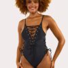 A step towards the dark side – this harness-laden set is bound to get hearts racing! Sheer black net is contrasted with matching satin elastic suspender straps that hug the thighs. The straps are adjustable to your liking, and work perfectly with short skirts and stay-ups! Match with the Regent Balcony Bra and Brazilian Brief for the full look…