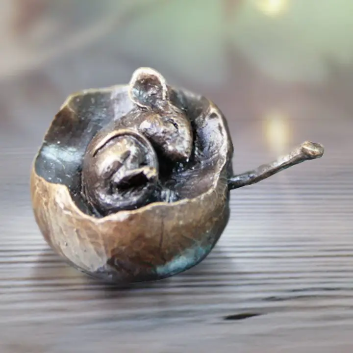 With a full tummy and a peaceful corner to rest, this tiny mouse has found the perfect place for forty winks. Curled up on a convenient soft bed, it sleeps soundly—perhaps dreaming of its next meal—while breakfast sits right on its doorstep… or rather, is its doorstep! Full of charm and gentle humour, this delightful miniature captures a cosy moment of contentment. Measuring just 1.8 cm high, 3.5 cm wide and 2.5 cm deep, the sculpture is carefully cast in pure foundry bronze by Butler & Peach, highlighting the fine detail and character of the piece. Beautifully presented in a printed box with a soft pouch, it makes a wonderful keepsake or a thoughtful gift.