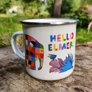 A bright and cheerful enamel mug by Robert Frederick featuring Elmer, the much-loved patchwork elephant created by David McKee.Lightweight and durable with a classic camping-style rim, this mug is ideal for tea, coffee, or hot chocolate at home or outdoors.Enamel | 320ml | Dishwasher safe | Not microwave safe