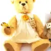 Abner is number 8/8 of a Limited Edition By Robin Rive. He is 5 way jointed, made from brown mohair with felted paw pads, black safety eyes and soft brown nose. He is wearing cream cotton dungaree's and has his own ladder. Complete with swing label certificate, 10"/26cm