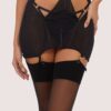 Inject a pulse raising jolt of provocative purple into your lingerie collection with the ‘Rosanna Purple Long Line Plunge Set’. Designed for those with a fuller bust and the perfect blend of playful femininity, this lingerie set features a Longline Plunge Bra, Suspender Belt, High Waist Thong and Briefs cut from sensuously sheer purple mesh overlaid with delicate floral embroidery, which is offset by harness straps.