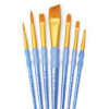 Royal Brush Company 7 Pc Gt Oval Variety Brush Set 3 Pack from World of Craft. Crafters Choice Gold Taklon Brush – The durable polymer handles feature a soft rubber grip for extra comfort while painting. Variety Pack (one each of Filbert size 6, Shaders sizes 4,8, Wash size 3/4”, Round size 8, Angular 1/4” and fan size 1) – 3 of same pack