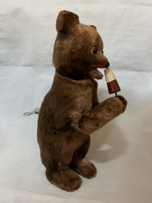 Russian Clock Work Vintage Brown Silk Plush Bear Eating an Ice Lolly