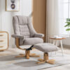 This soft fabric recliner chair offers luxury and comfort at an unbeatable price. The Sardinia is a versatile and stylish addition to any home. Its fresh look and range of fabrics & leathers make it a perfect fit for any décor. The Sardinia also boasts an easy recline mechanism and 360° swivel, providing ultimate comfort from head to toe, and with its mid oak star base, this chair adds a touch of sophistication to any room. Colour Availability as of 30/03 Chacha Oat Low stock Chacha Dove In stock Chacha Fern Early May Chacha Ocean Late April Griege In stock Hessian In stock Soft, easy clean fabric. Great support. Incredible value. Incredible value fabric recliner Made with natural soft and easy clean fabrics 6 wonderful fabrics, plus another variant with real leather on all contact areas Plenty of width and height, plus excellent lumbar support Adjusting knob allows you to fix ideal reclining position Large, shaped feet Comes with well padded sloping footstool Generous dimensions. Full-body comfort. Sturdy construction. The Sardinia’s large seat and high back offer full-body comfort, and the wood laminate feet serve as a sturdy base. 360-degree swivelling. True rotational freedom. Take it for a spin. This chair swivels a full 360 degrees, giving you complete flexibility. Features Star spindle base Steel frame Manual recline Supports up to 18 stone Medium assembly required
