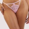 Seduce in Saretta. This Cornflower blue striped Mesh and Lace High Waist Thong features striped soft mesh, with lace accents on the hips and a cheeky thong finish in the back. Match with the Saretta Plunge Bra for the full sexy set.