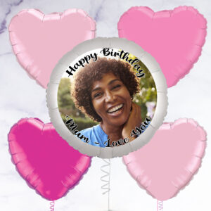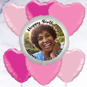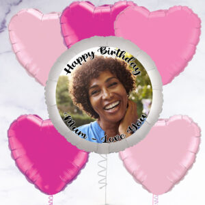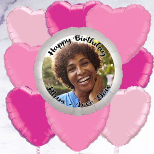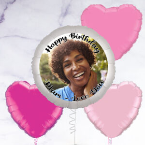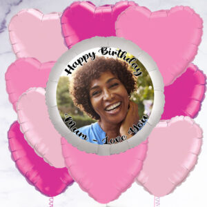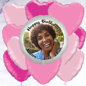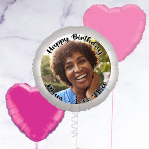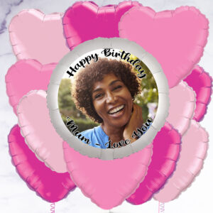 Our personalised photo balloon is the perfect gift for a special occasion such as an anniversary or Valentine’s Day, with the option to add a selection of pink foil balloons to make a great bunch. Arriving inflated, you can add a photo of your choice to the balloon, as well as a personalised message. Photo balloon is 23″ in diameter, Foil balloons are 18″ – 20″ in diameter, Balloons arrived inflated with a weight, Float time: Approx 10 – 14 days, Note: If you order 4 or more balloons, your order may arrive in multiple boxes, How It Works Upload your image. Choose an image that’s as big as possible – this will allow you to choose the right part of your image to feature on the balloon., Use your mouse (computer) or finger (mobile/tablet) to move the balloon over your image in the preview above. Use the arrows to zoom in and out until you’re happy with your selection., Add your text – we can add one line of text at the top and one line of text at the bottom, or you can choose to have no text at all., Use the ‘Click here to see a preview’ button to see what your finished balloon will look like., On the next stage you can choose to add between 1 – 11 foil balloons to create a bunch.,
