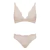 Expert craftsmanship is combined with timeless lingerie design with the signature padded plunge bra and brief lingerie set in blush. This ultra feminine set is crafted in Portugal using the finest French lace and silk in a romantic shade of blush pink. The full set features our lightly padded plunge bra with silk lined cups, and our delicate everyday lace brief.