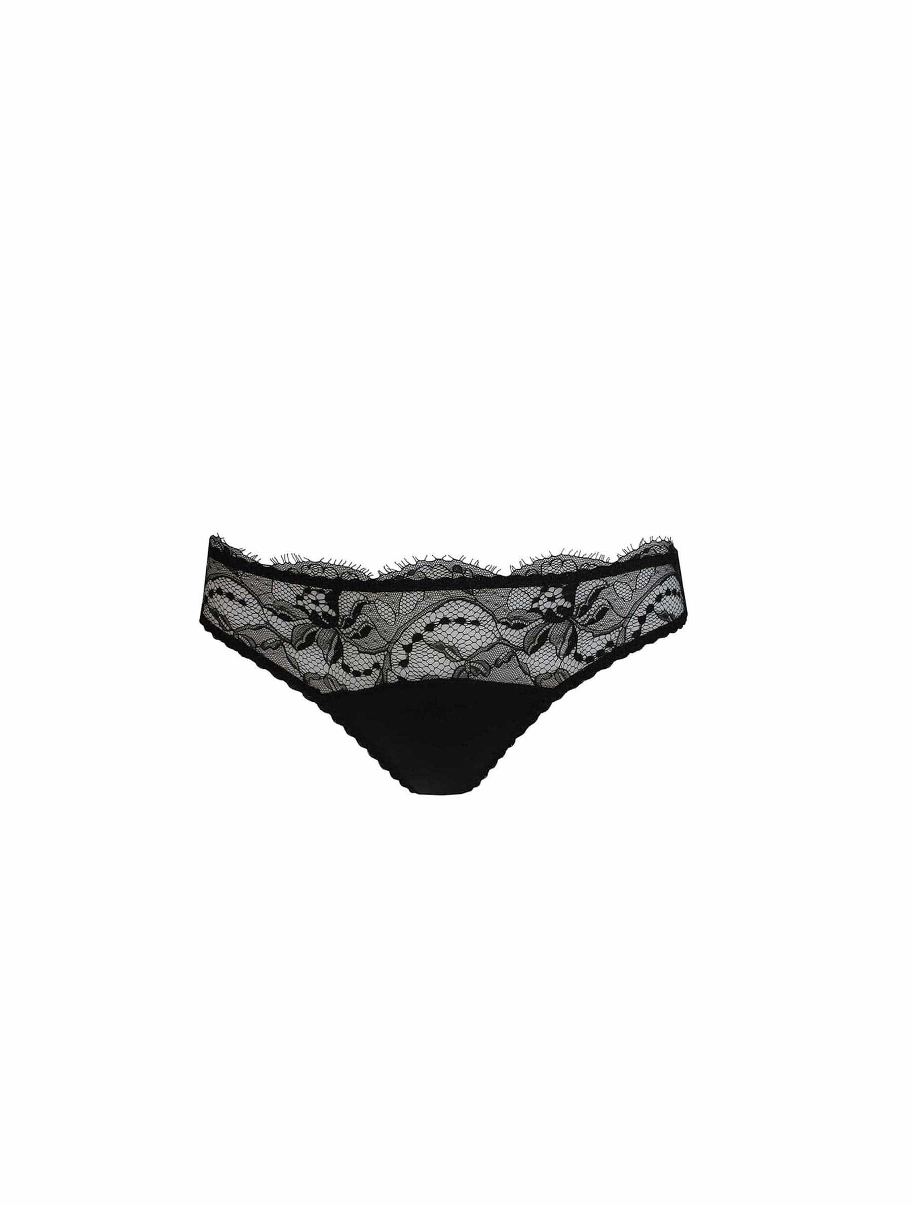 Our mid rise Signature Black lace thong is designed to be both flattering and comfortable. With a black French eyelash lace front panel and cotton lined silk gusset, the classic style is perfect for slipping on under any outfit. The back of this gorgeous piece of lingerie is made from stretch silk Lycra for extra comfort. Available in a wide size range.