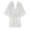 The Signature Black robe is crafted in elegant black silk satin with appliquéd lace sleeves. Designed to fall mid-thigh, the luxury robe is sexy and flattering, the perfect piece to throw on as the night draws in.