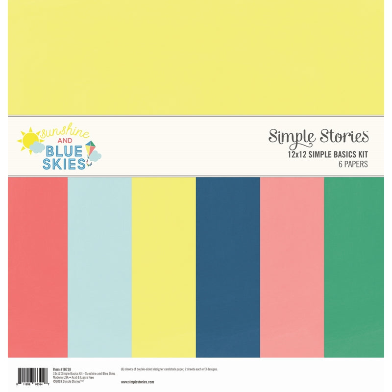 Simple Stories Simple Basics Kit from World of Craft. Simple Basics Kit. Sunshine & Blue Skies. (6) 12×12 Cardstock papers – 2 sheets each of 3 designs. SI1503