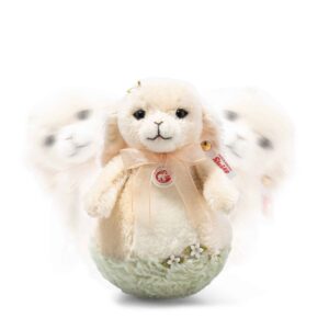 Back in 1909 Steiff created something a little different, to inspire the toy market with. The fun, giggle bringing Roly Poly's, that had a distinctive, rounded lower half that could rock side to side, whilst always returning to their upright position. In revisiting these glorious characters, Steiff have created their Spring, Roly Poly Bunny, following in the rolls of Snowy Owl.