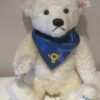 He has the famous Steiff – Button in ear – with a yellow label and is machine washable at 30c.