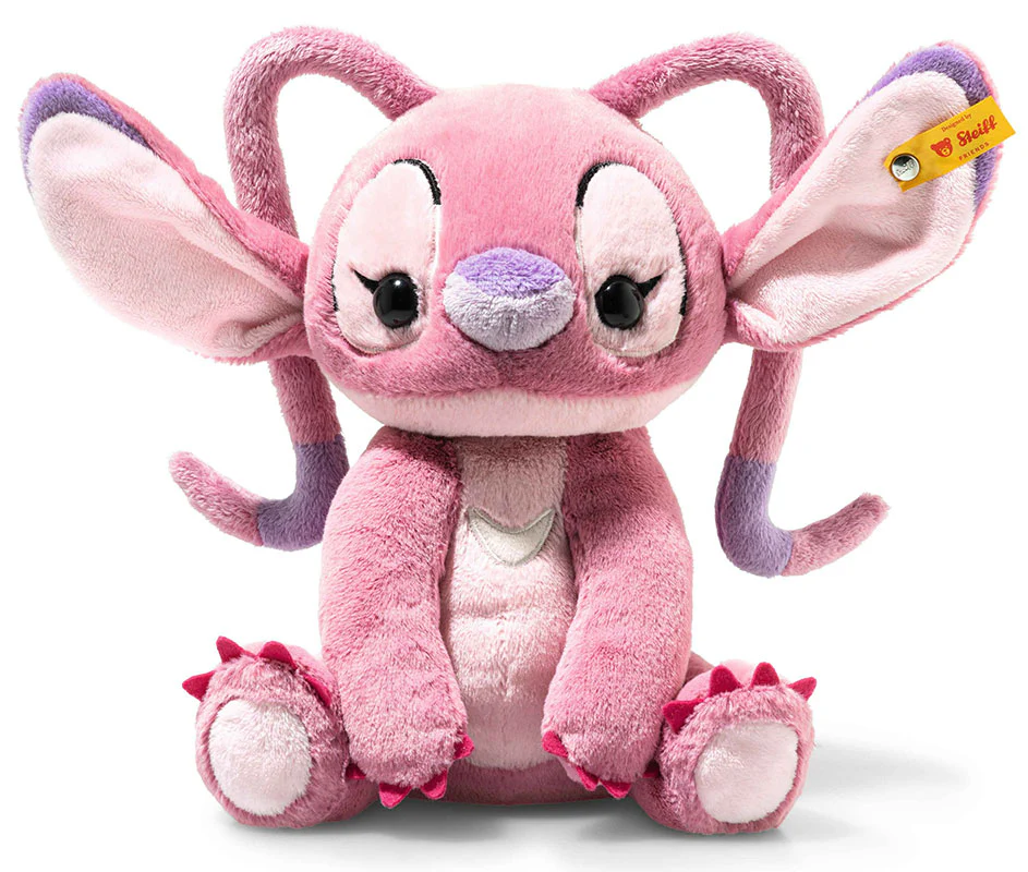 Building on Stitch's immense popularity, Steiff has introduced his charming female counterpart, Angel! Measuring 23 cm in size, this delightful plush is crafted from luxuriously soft pink and lilac fabrics, ensuring a cuddly and comforting feel. Partially stuffed with poly pellets, Angel has a wonderfully huggable texture. Her design features intricate details, including dark pink plush claws, a two-tone nose, and striking antennae, all of which capture her unique character. Perfect as a companion to Stitch or a stand-alone treasure, this enchanting 23 cm Steiff Angel is a must-have for fans and collectors alike, spreading joy with her adorable and playful charm.
