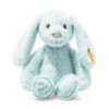 Eeyore is a 25 cm / 9.8" non-jointed, slouchy character donkey. He has been sewn from a mix of luxurious silky-soft, plush, in grey-blue and sky blue, with rose pink, for his long strokable ears and the bow on the end of his tail, whilst a glossy, fluffy black mane and tail tip add more charm. He has glossy black safety eyes, that shine below his emotive, embroidered black eyebrows, with nostril detail and a wide grin upon his muzzle and to finish, a fabulously tactile, bean filled squidgy tummy and feet, for that satisfactory weight and cuddly feel.