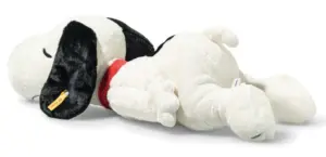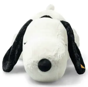 Looking like he is sleeping on the roof of his kennel Steiff bring you this delightful and irresistibly soft Snoopy, Charlie Brown's best friend from the Peanuts comic strip, perfect for fans of the beloved character. Measuring 43 cm in length, this cuddly creation is made from the finest black and white plush fabrics, ensuring both quality and comfort. Snoopy is adorned with his signature red collar, adding a touch of classic style to his relaxed, horizontal pose. With his eyes gently closed, he exudes a peaceful and endearing vibe, making him an ideal gift for Snoopy enthusiasts of all ages. Whether as a cherished collectible or a comforting companion, this 43 cm Steiff Snoopy is sure to bring joy and warmth to anyone's heart.
