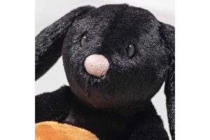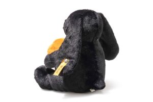 With his deep black plush fur and a bright orange pumpkin nestled between his paws, Steiff's Mr. Spice Hoppie Rabbit hops straight from Halloween night into your arms. His sumptuously soft plush, gentle eyes, and sweet pink nose give him a tender expression full of warmth and charm. The cheerful pumpkin, complete with a spooky-yet-friendly face, makes him a delightful seasonal companion – perfect for cuddling, adding to Halloween decorations, or joining in on autumn adventures. Bean bags in his seat provide stability and add to the tactile experience, making him fun to hold and pose. Measuring 16cm and proudly wearing the iconic Steiff “Button in Ear”, Mr. Spice is a festive favourite sure to enchant Halloween lovers of all ages.