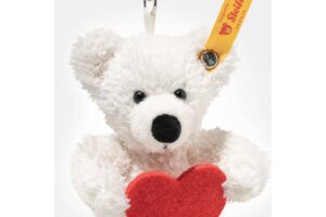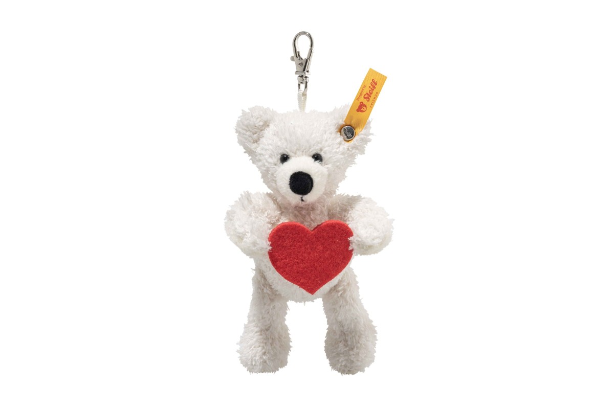 “bringing love with me…” it's little Lotte from Steiff, measuring 12 cm, she is always ready to accompany you on life’s journey. This cuddly white Teddy bear, crafted from soft plush, holds a vibrant red felt heart in her paws, spreading warmth and love wherever she goes. With her loyal, adoring eyes, Lotte gazes happily out into the world, eager to be your steadfast companion. Easily attachable to a bag or rucksack with a convenient carabiner, she stays by your side, making her the perfect thoughtful gift for any occasion.