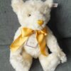 Donald Duck is made by Steiff using the finest RMS mohair with yellow felted cotton for his legs, webbed feet and open beak, his large expressive eyes are embroidered. He is wearing his iconic blue sailors shirt with 4 felt buttons and black bow tie, to complete his famous look is his sailors hat with its ribbon streamer at the back.