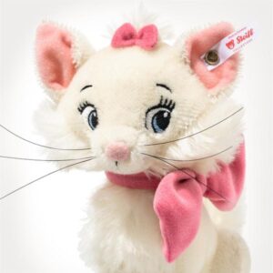 Crafted from the finest white mohair, this exquisite Steiff Marie perfectly captures the charm and elegance of her beloved mother, Duchess, both from the Disney animation Aristocats. Measuring 18cm, she is the ideal collectible size, exuding sophistication while maintaining her playful, kitten-like appeal. Her irresistibly fluffy mohair cheeks, tail, and chest add to her luxurious feel, while her signature pink hair bow and matching collar complete her sweet, little lady look. As a Steiff creation, she proudly features the iconic button-in-ear tag, signifying her premium craftsmanship and collectible status. A must-have for Disney fans and cat enthusiasts alike, Marie is ready to bring a touch of aristocratic charm to any home.