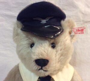 Concorde was the name given to a supersonic plane developed in the late 1970's, who's premier flight from London to New York occurred in November 1977. Twenty-six years later, after almost 50,000 flights carrying 2.5 million passengers across the world at Mach Speed, she was removed from service. This beautiful Steiff Captain Mach Teddy Bear pays tribute by celebrating this spectacular plane and the genius behind it.