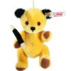 This pretty Bear is Mini Dorothy, a 14cm tall Mohair, Steiff Teddy Bear, and the miniature version of 2011 Musical Dorothy from The Wizard of Oz series. Mini Dorothy is fully jointed and made from a gorgeously dense mohair, and adorned in a gingham dress and those fabled – Ruby Red Slippers -. She is a UK, Ireland and North American Exclusive Limited Edition of 1,939 pieces, and comes boxed with her numbered certificate of authenticity.