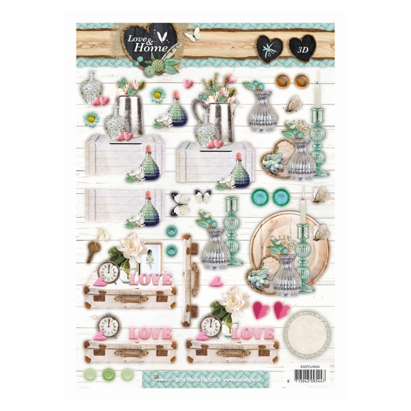 Studio Light 3d A4 Love & Home 504 from World of Craft. Studio Light 3D A4 Die-Cut Sheet Love & Home 504. Gently push the die cut shapes from the paper and layer them up on your greeting cards, scrapbook pages and gift boxes. A4 Single sheet 210mm x 297mm.