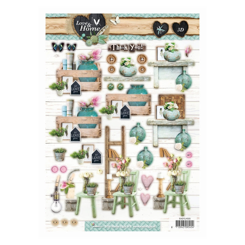 Studio Light 3d A4 Love & Home 505 from World of Craft. Studio Light 3D A4 Die-Cut Sheet Love & Home 505. Gently push the die cut shapes from the paper and layer them up on your greeting cards, scrapbook pages and gift boxes. A4 Single sheet 210mm x 297mm.
