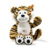 Tiger is 33cm x 18cm x 12cm in size and is just so invitingly soft and cuddly before he comes to life – with a little bit of help. A pocket in his rear allows for a hand to reach in all the way up to his head and front legs to activate movement and animate. He has been sewn from a mix of sumptuously dense plushes in golden toffee, white and golden toffee with printed black stripes and a densely fluffy white long-pile for his jowls. With sparkling two-tone brown safety eyes and fabulous hand applied shading to give detail and definition, The Puppet Company have created an inviting little character. Now it's up to you – it's how you play with him, that turns him into a special friend!