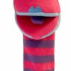 The Puppet Company Sockettes 40cm Glove Puppet – Scorch. This fabulously fun and eye-catching glove puppet has been made from a rather fetching pink and blue knit. His ears however are a clashing green and yellow in colour. He has a working mouth with a pink knit tongue inside which houses a squeaker. His large blue and black eyes complete his wacky look. Hand wash and air dry.