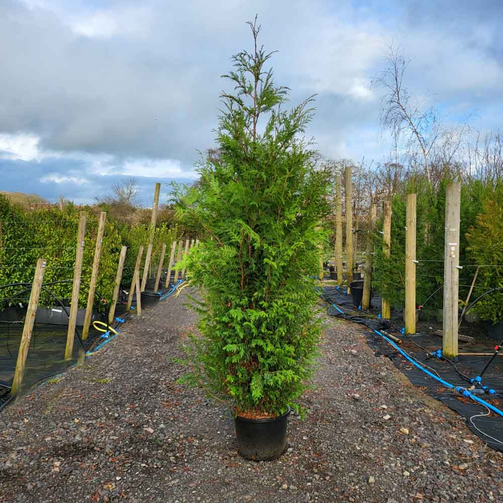 These Thuja plicata are in 35 litre pots and need two people to lift them.
