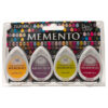 Tsukineko Memento 4 Piece Set Beach Party from World of Craft. Memento 4 Piece Set Beach Party. Memento dye ink is fast drying and fade resistant. The innovative pad delivers finer impressions and exceptionally even coverage. Application – Coated paper, vellum, uncoated paper, printer paper. Drying time – 3 to 5 seconds on coated paper. Virtually instant on uncoated papers. Varies based on surface / material, humidity, etc. Particularly for glossy vellum and coated paper are suited for reproducing fine detail and lines. Dries very quickly for regular paper like New Years Greeting post cards and schedule stamps. Brilliancy of the ink is more obvious than regular dye ink resist for water and light. Memento Dew Drop is suited for colouring the boarder lines and fine detail art works. Can be used with ink blender for shading and spray effect. *please refer to ink blender. It is possible to mix with inker. L size Memento comes with the sticker on side of the cover for easy identification. MPN MD-100-012