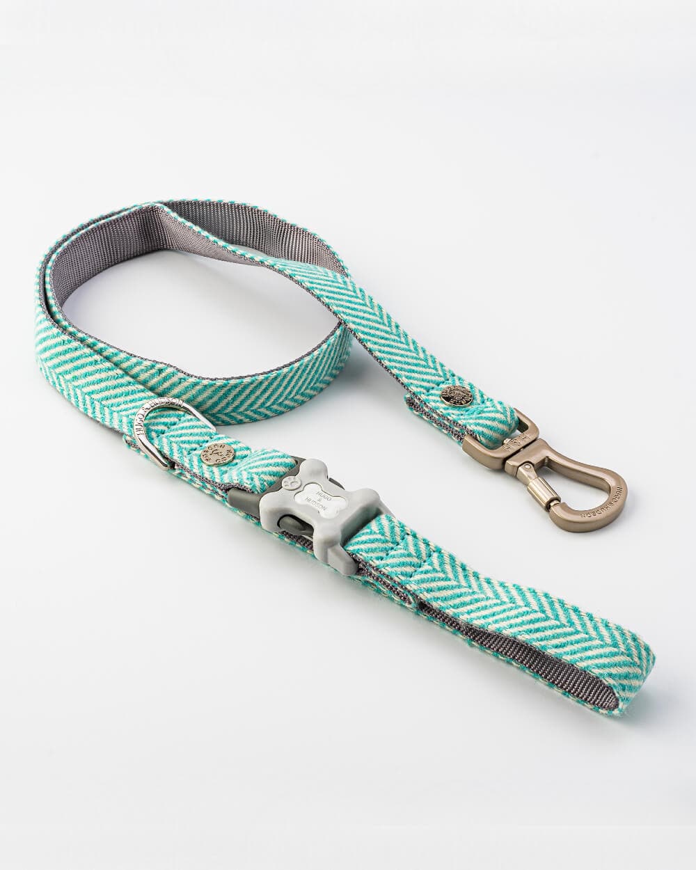 Take your pup for a walk in classic British style with the Aqua Herringbone Tweed Dog Lead. Crafted from a quintessential herringbone tweed fabric, this luxury lead ensures your pup is stylish and secure. With its quick release clip, you can easily attach it to posts, tables, or chairs – you’ll never have to worry about knots or tangles ever again! The perfect accessory for all breeds and sizes, get your dog the lead they’ll love! Matching collar and harness also available.