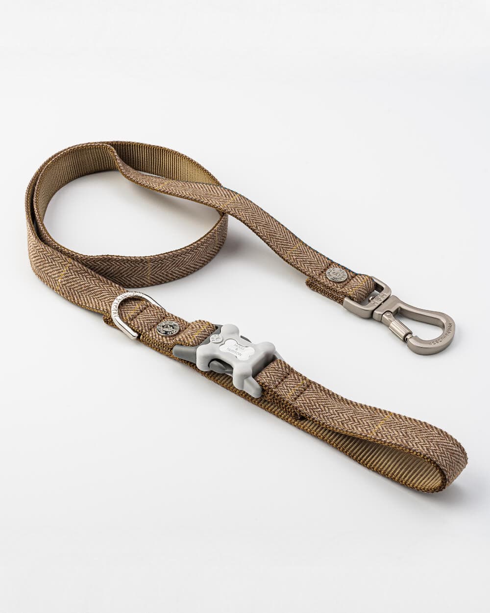 Take your pup for a walk in classic British style with the Caramel Checked Herringbone Tweed Dog Lead. Crafted from a quintessential herringbone and checked tweed fabric, this luxury lead ensures your pup is stylish and secure. With its quick release clip, you can easily attach it to posts, tables, or chairs – you’ll never have to worry about knots or tangles ever again! The perfect accessory for all breeds and sizes, get your dog the leash they’ll love! Matching collar and harness also available.